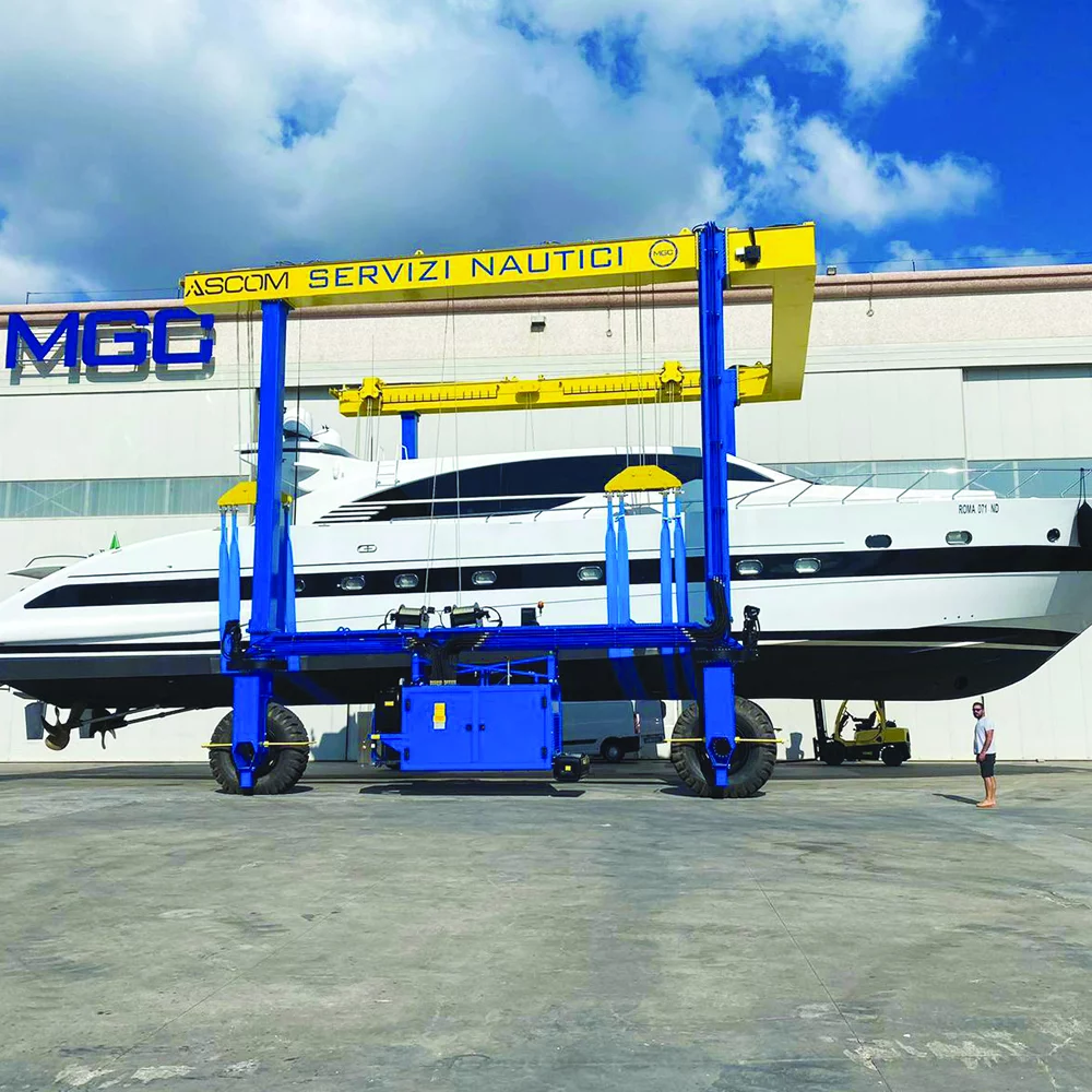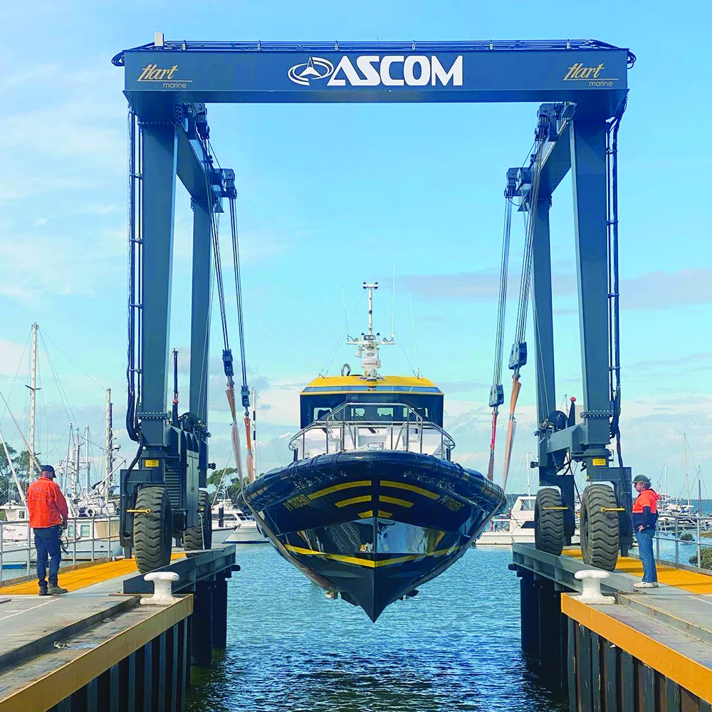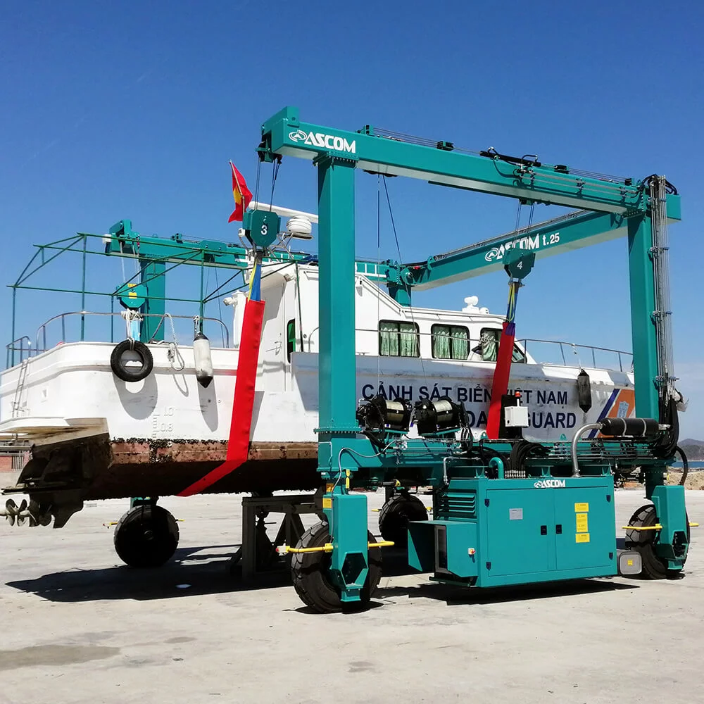 Ascom BHT (Boat Hoist/Travel Lift) er en robust, selvgående båtheis utviklet for sikker og effektiv håndtering av fartøy i marinaer og båtverft—opptak, sjøsetting og transport på land med høy presisjon.